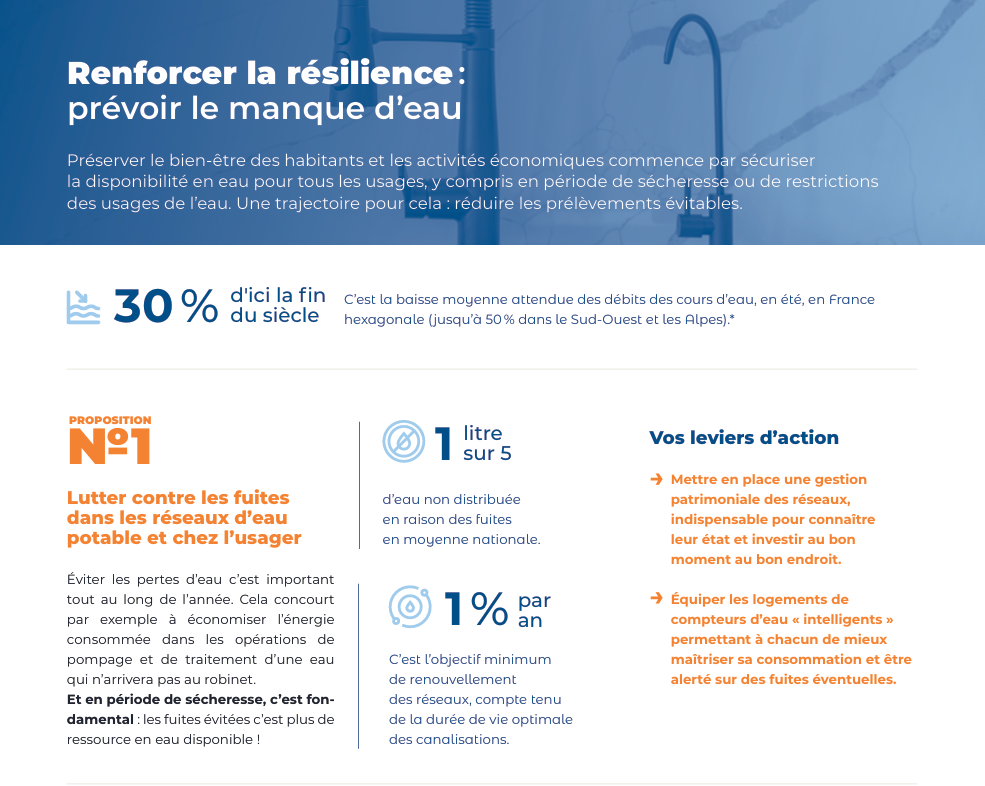 Parmi les 10 propositions de l’UIE, la proposition n°1 porte sur la lutte contre les fuites, notamment dans les réseaux d’eau potable.